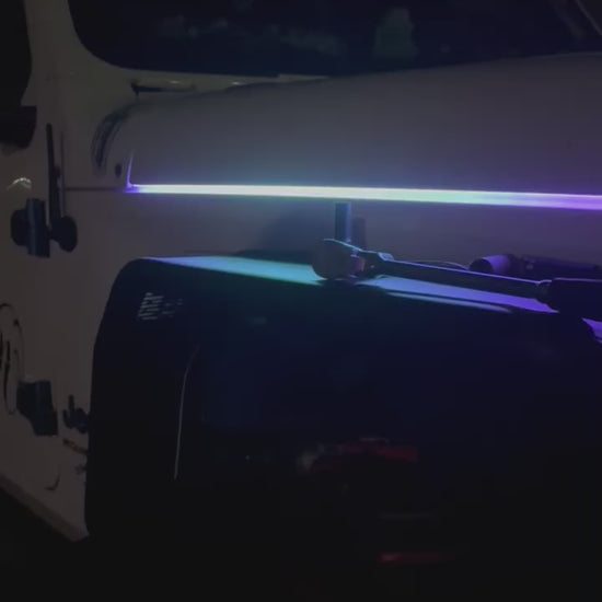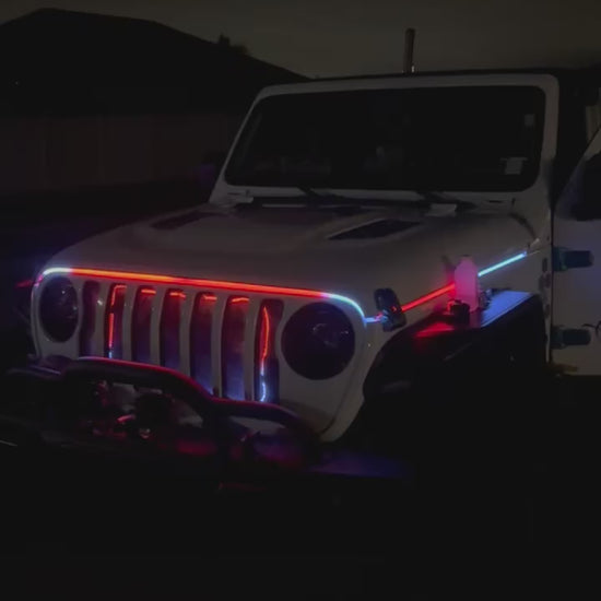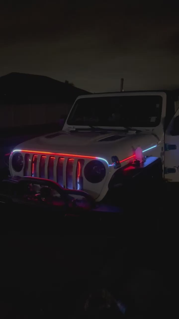 Enhance your Jeep experience with the Shoreline Offroad Pro Series Custom Strip Lighting Hood Kit. This innovative lighting solution transforms your vehicle with vibrant, customizable colors that are both eye-catching and functional.